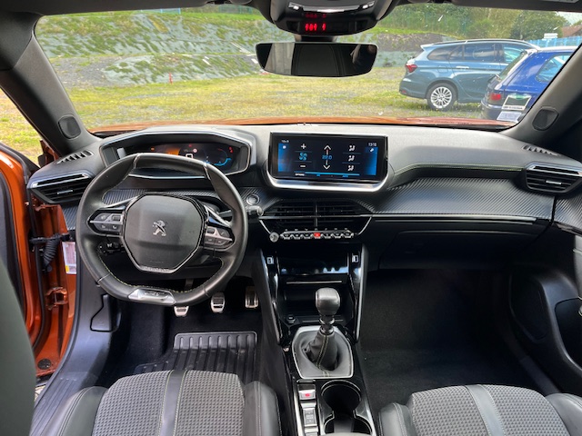 2 telecommandes 3 boutons|4 poignees de maintien (2 a l'AV et 2 a l'AR)|6 HPs (2 tweeters et 2 woofers a l'AV et 2 HPs a l'AR)|Air conditionne manuel|Airbags frontaux, lateraux AV (thorax et abdominaux), rideaux AV|Allumage automatique des feux de croisement|Appuis-tete reglables en hauteur AV et AR (x3)|Avertisseur de temps de conduite|Banquette rabattable 1/3 - 2/3|Becquet AR couleur caisse|Calandre avec grille superieure Noir grainee, enjoliveur superieur Noir Brillant|Canule d'echappement non chromee|Ceintures AR centrale 3 points avec detection de non bouclage|Ceintures de securite AR laterales avec enrouleurs pyrotechniques, limiteurs d'effort et|Ceintures de securite AV conducteur et passager a enrouleurs pyrotechniques avec limiteurs d'effort|Commande d'ouverture exterieure couleur caisse|Commandes d'ouverture interieure de portes chromees|Console basse|Coques de retroviseurs couleur carrosserie|Coques de retroviseurs exterieurs avec repetiteurs lateraux a LED|Detection de sous-gonflage indirecte|Direction assistee electrique|Eclairage de coffre a ampoule|Eclairage exterieur d'accueil et d'accompagnement|Eclairage interieur a ampoules : plafonnier AV a 3 spots (1 lampe et 2 liseuses)|Enjoliveurs de custode Noir Brillant|Enjoliveurs de seuil de coffre Metallure|Essuie-vitre AV a declenchement automatique|Feux AR 3 griffes a LED|Feux diurnes a LED sous projecteurs|Fixations suivant norme ISOFIX et Top Tether avec etiquettes de localisation aux places laterales AR|Fonction Bluetooth et Mirror Screen (Apple CarPlay / Android Auto / MirrorLink)|Habitacle et ciel de pavillon gris clair|Hill Assist|Jantes alliage 16" ELBORN Gris Anthra, cabochons Gris Anthra et vis chromes|Katana Noir Mat|Kit de depannage pneumatique avec conditionnement rigide|Lecheurs de vitres laterales Noir Mat|Leve-vitres AV et AR electriques sequentiels avec antipincement|Pack Safety|Pare-brise teinte acoustique|Passages de roues Noir Mat|Peugeot i-Cockpit® avec combine tete haute analogique et matrice TFT 3,5 couleur|Planche de bord slush et panneaux de portes AV avec decors aspect carbone et baguette Noir Brillant|Plancher de coffre standard|Programme de Stabilite Electronique (ESC) avec ASR, ABS, REF, AFU, CDS et TSM|Projecteurs LED Technology, indicateurs de direction a ampoules|Protections laterales de portes Noir grainees|Radio avec ecran tactile capacitif 7" couleur, 1 prise USB type A (DATA) sur console AV|Regulateur / Limiteur de vitesse|Retroviseur interieur a reglage jour/nuit manuel|Retroviseurs exterieurs degivrants a reglage electrique|Sellerie Tri matiere Tissu PNEUMA 3D, surpiqure Orange Intense|Siege conducteur avec reglage manuel en hauteur|Teinte metallisees Orange Fusion|Verrouillage automatique de tous les ouvrants en roulant|Vitres laterales AR et lunette AR chauffante temporisee teintees|Volant compact croute de cuir, Lion chrome et commandes multimedia sur volant|Volant reglable en hauteur et en profondeur